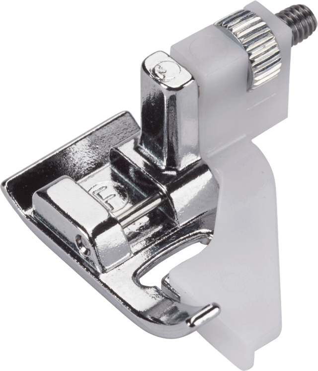 This foot is most suitable to sew blindhems or to topstitch edges. The stitches only pierce the hem so that the stitch holes are hardly visible on the right side of the fabric.
