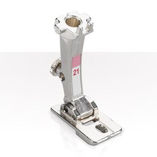 Braiding Foot #21’s beveled hole for cords and yarns up to 3 mm in diameter ensures neat; even couching. The result: high-quality; attractive sewing projects.