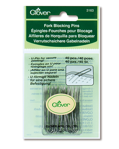 U-Pin for secure pinning and easy removal. Caution: Pins may heat up during steam-blocking. Please allow them to cool before removing. (40 pins per package)