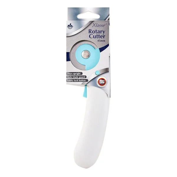 This soft grip 45mm rotary cutter is ideal for cutting fabric and fabric patterns. Use with a self-healing cutting mat to protect your work surface. The automatic blade guard and safety lock button on this rotary cutter are designed for ease of use and safety. These rotary cutters are also part of our plastic free packaging range which includes the ?Try Me? feature. See how the rotary cutter feels and test the safety lock easily within the packaging.
